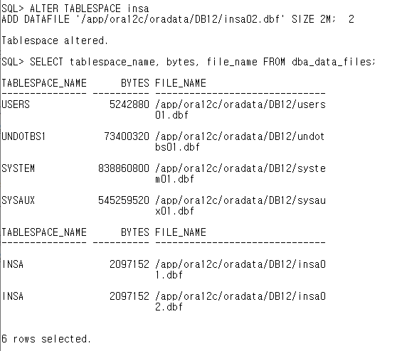 ADD DATAFILE '/app/ora12c/oradata/DB12/insa02.dbf' SIZE 2M;