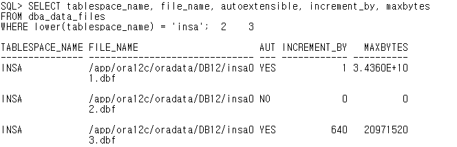 -> data file의 자동 증가는 data file 각각의 설정이므로 기존 tablespace에 자유롭게 추가할 수 있다.