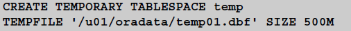 TEMPFILE '/u01/oradata/temp01.dbf' SIZE 500M