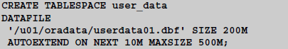 DATAFILE '/u01/oradata/userdata01.dbf' SIZE 500M