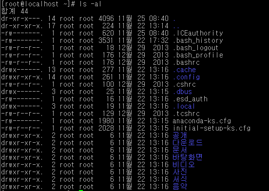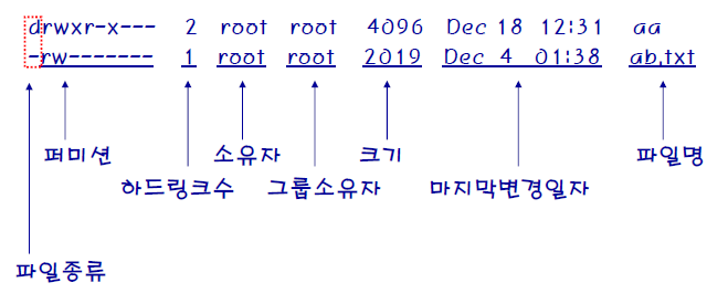 d : 디렉토리(리눅스에서는 색으로도 구분되어 있음)