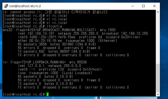 - 추가 설정 파일(호스트명, gateway, NOZEROCONF=yes)