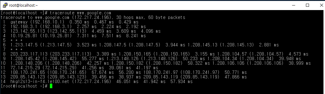 - 출발지 시스템에서 목적지 시스템까지의 데이터 전송 경로를 추적하는 명령어
