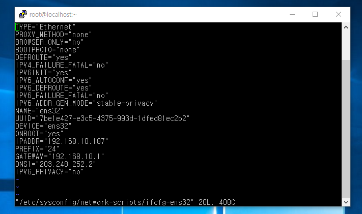 - IPADDR : IP주소. IP주소를 변경 후 네트워크를 재시작 해주면 IP가 변경 됨.