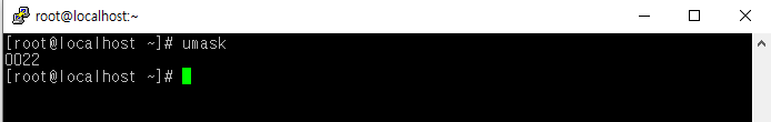 - 파일을 만들때 퍼미션중 제외할 퍼미션 지정. 기본적으로 022(0022)로 지정한다. /etc/profile에 설정됨.