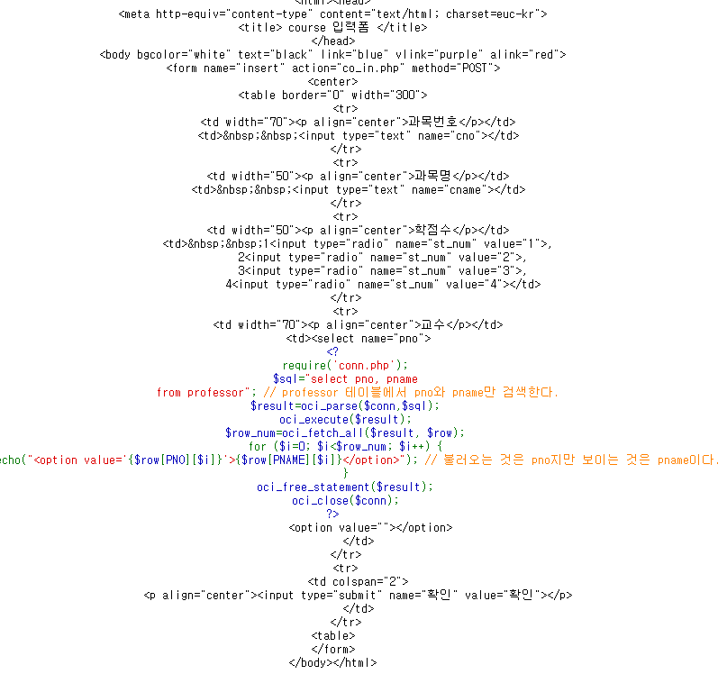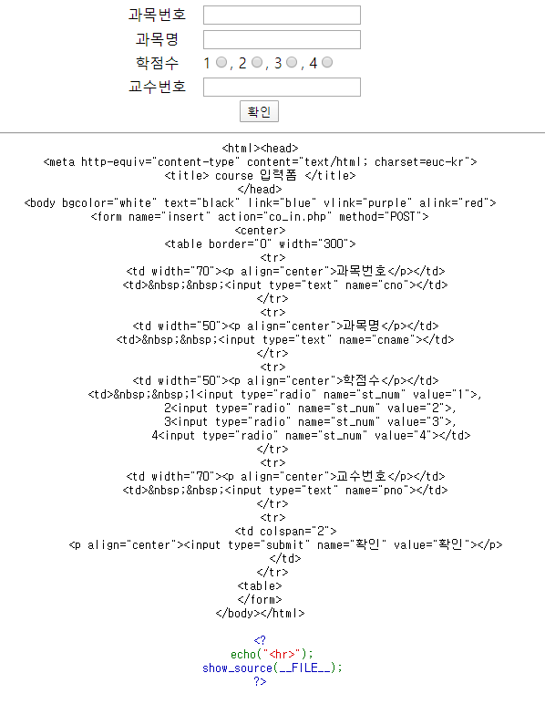 2. 과목 테이블에 입력된 데이터를 전달 받아 입력할 프로그램을 작성(co_in.php)