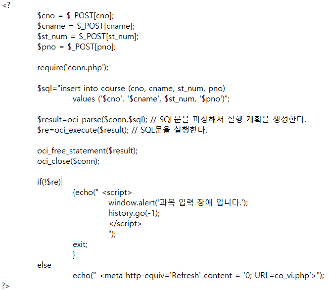 $re=oci_execute($result); // SQL문을 실행한다.