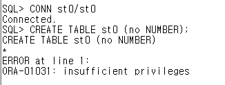 // st0에게는 table을 생성 할 수 있는 권한이 없다.