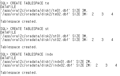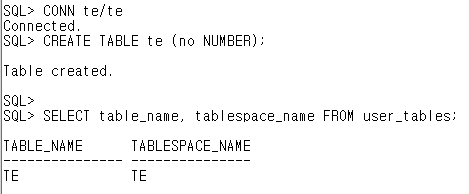 // 디폴트 테이블스페이스가 te기 때문에 te에 생성