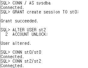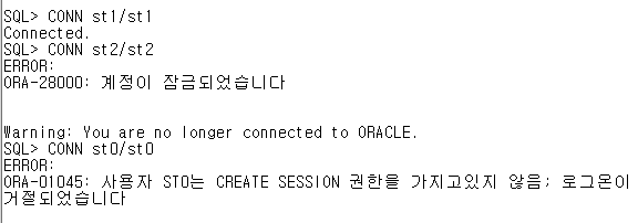// st0는 lock이 설정되지는 않았지만 'CREATE session' 권한이 없어서 접속할 수 없다.