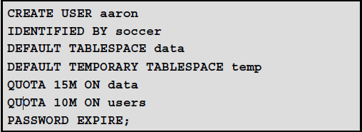 default 또는 temporary 테이블스페이스 : 사용자의 기본 테이블스페이스나 임시 테이블스페이스 식별