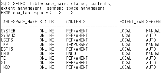 // 쓸 수 있는 테이블 스페이스 전무.(bst15는 무시)
