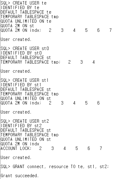 - QUOTA : tablespace별 허용된 저장량