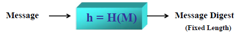 - 임의의 길이(M)를 취해서 정해진 크기(h)의 Message Digest를 만드는 one-way function(H)(일방향 함수).
