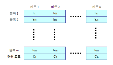 - 메시지 인증 코드에 대한 변형, 메시지의 모든 비트들에 대한 함수