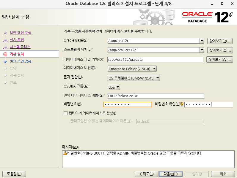 2-4. Ora12c 계정 설정