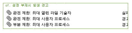 soft nofile : 1024개까지 열면 경고 메세지 출력