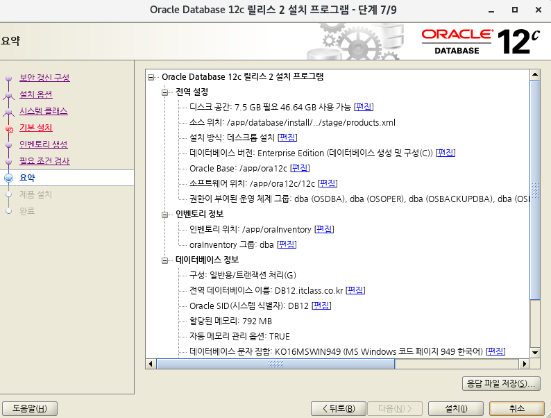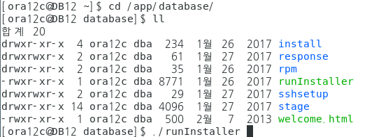 홈 디렉토리 : /app/ora12c/12c