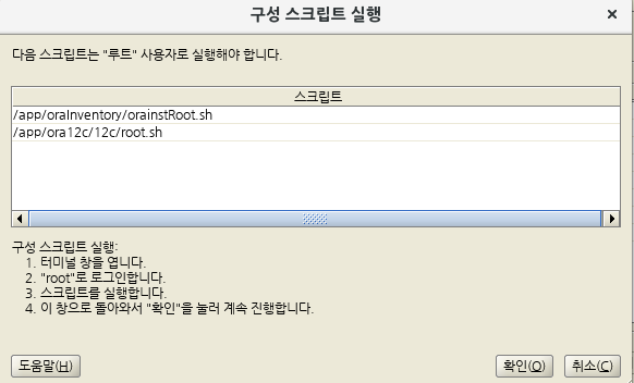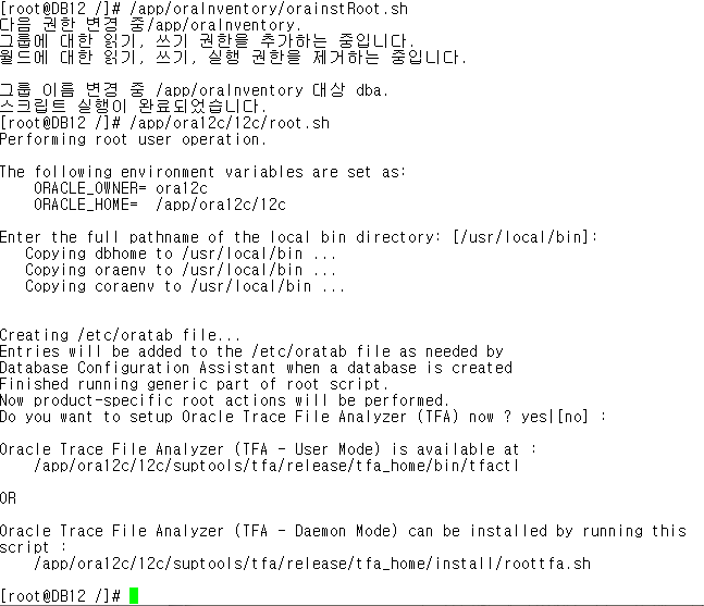 - /app/ora12c/12c/root_sh 입력후 추가 설정 부분에서는 전부 엔터