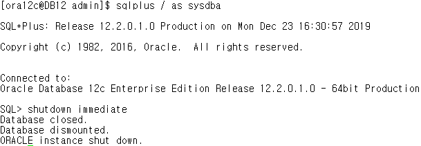 - ora12c 계정. 즉, 설치될 오라클의 관리 계정에서 수행.