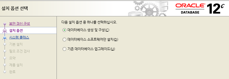 - 데이터 베이스 생성 및 구성 선택