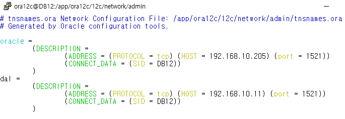 내용 추가. tnsnames.ora에 적히는 oracle과 dal은 접속에 사용할 호스트명과 접속 정보이다.