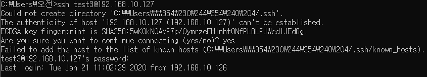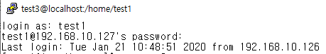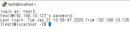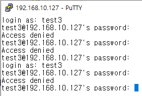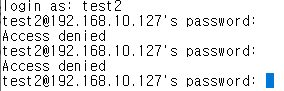test1과 test2는 접속이 되지만 test3 그리고 root도 접속이 되지 않는 것을 확인