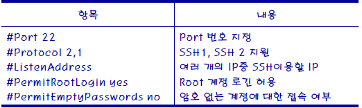 - 환경 설정 파일 : /etc/ssh/sshd_config