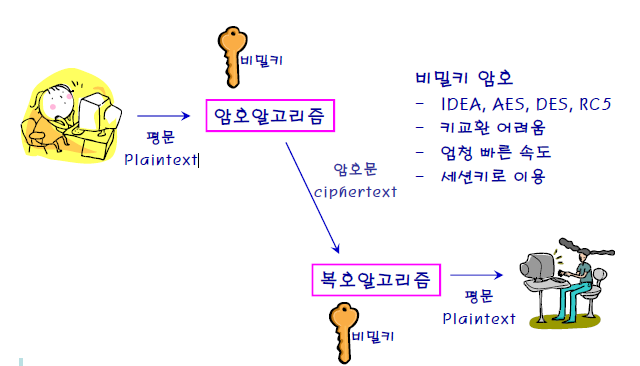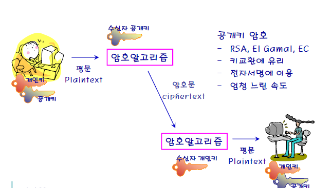 - 개인키가 유출되면 제 3의 인물도 평문을 개인키로 암호화 할 수 있음.