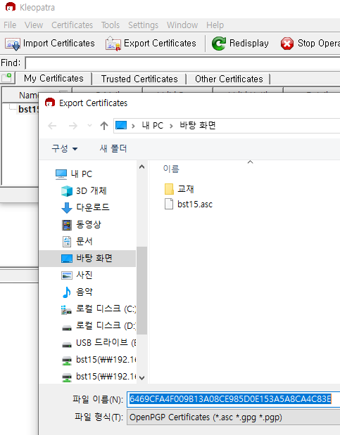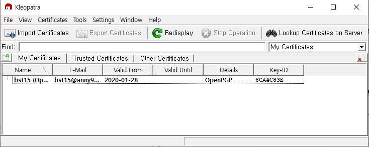 Kleopatra에서 생성된 키 확인