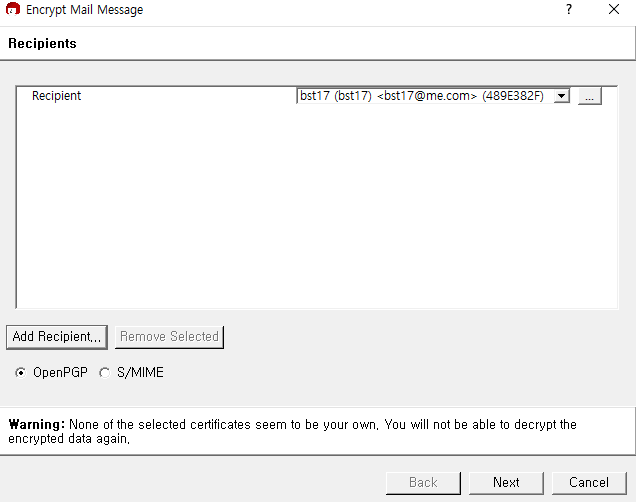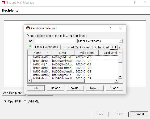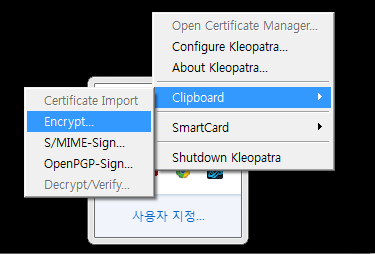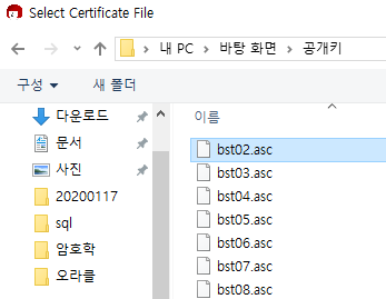 암호문을 만들 타인의 공개키 선택 -> next -> 완료