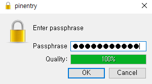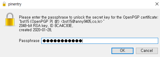 개인키 인증을 위한 passphrase 입력 -> 생성 완료.