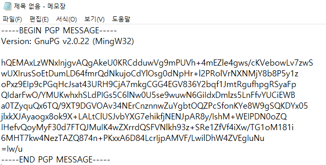 - 메모장에 [붙여넣기] 하면 암호문을 확인 가능.