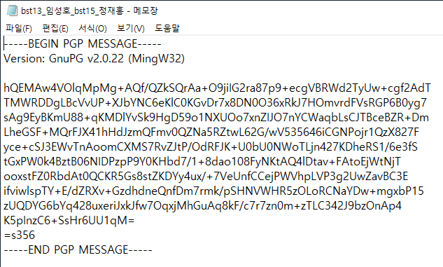 - 메일로 보내는 경우에 반드시 암호문 전체를 보내야 한다.